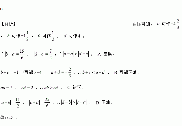 实数, , , 在数轴上的对应点的位置大致如图所示,则下列结论一定正确的是( ).