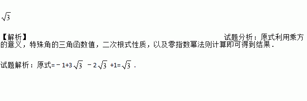 计算:﹣12+6sin60°﹣+20170 .