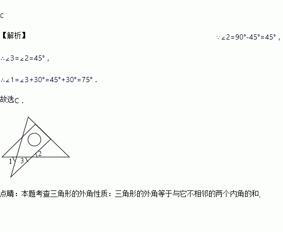 将一副直角三角板如图放置,使含60°角的三角板的直角边和含45°角的三角板的一条直角边重合,则∠1的度数为( )
