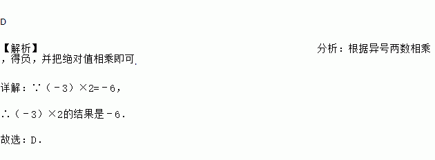 计算(﹣3)×2的结果是( )