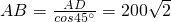 ½â£ºÔÚ¡÷ABDÖУ¬¡ÏA=45¡ã£¬¡ÏD=90¡ã£¬AD=200£®