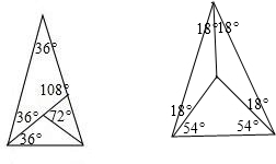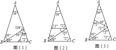 如图,△ABC中:AB=AC,∠A=36°.请用不同的五种方法将它分成四个相互独立的等腰三角形.如图1(对所作的三角形的特殊内角、点或线进行必要的说明)