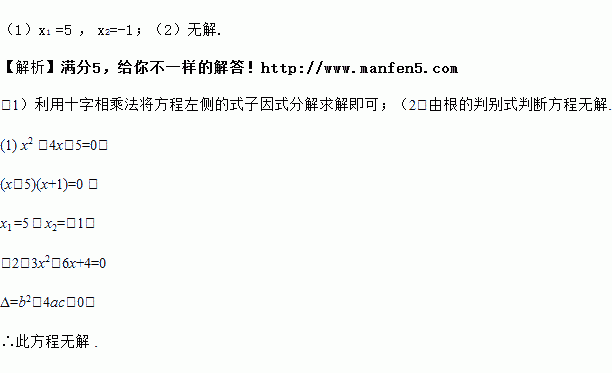 (1)x2 -4x-5=0 (2) 3x2-6x+4=0