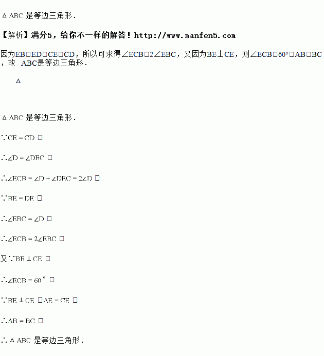 如图:在中,,点在上,,,是延长线上一点,.试判断的形状,并证明你的结论.