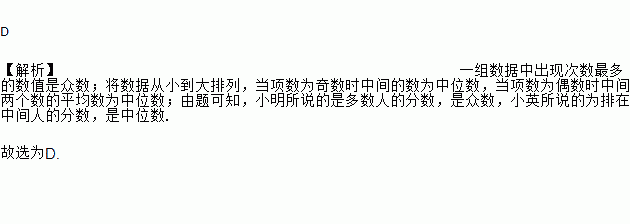 期中考试后,班里有两位同学议论他们所在小组同学的数学成绩,小明说:“我们组成绩是86分的同学最多”,小英说:“我们组的7位同学成绩排在最中间的恰好也是86分”.上面两位同学的话能反映出的统计量分别是( )