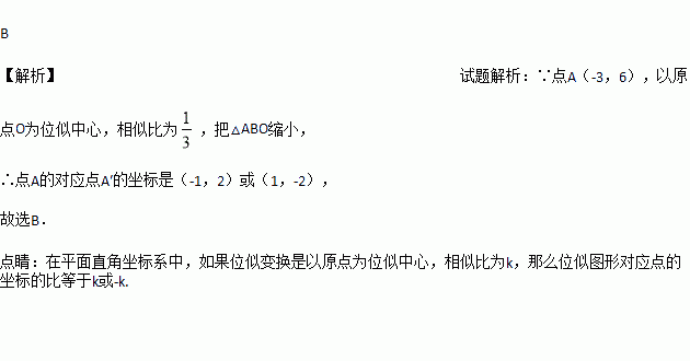 查看答案如图,在平面直角坐标系中,已知点A(-3,6)、B(-9,-3),以原点O为位似中心,相似比为