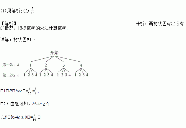 有一枚质地均匀的正四面体骰子,四面分别标有数字1,2,3,4;将骰子掷两次,第一次朝下一面的数字记为b,第二次朝下一面的数字记为c.