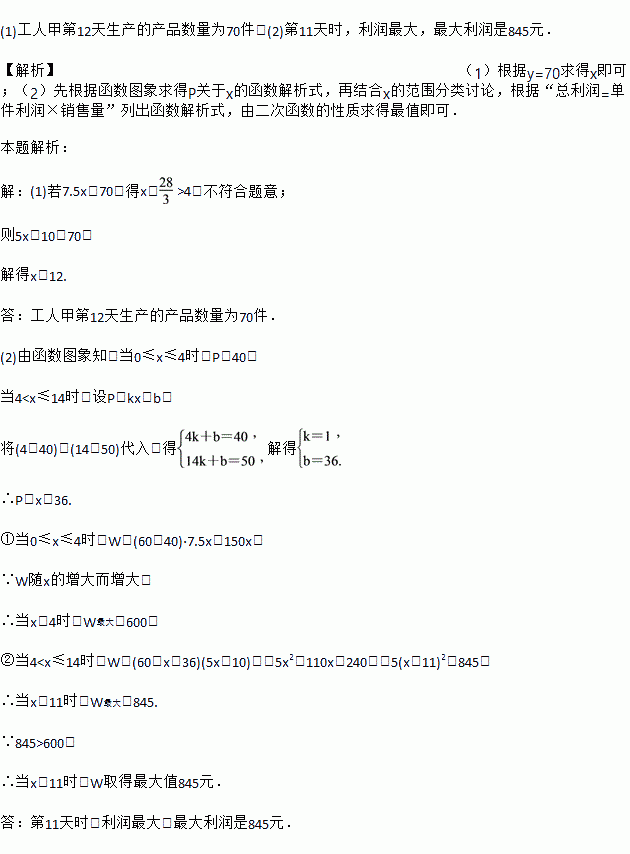 (1)工人甲第几天生产的产品数量为70件?