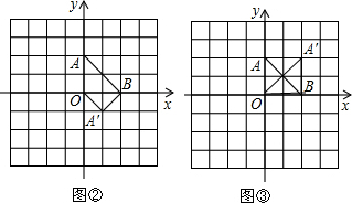 如图①,△A′OB是等腰直角三角形△AOB经过点A的一个变换后所得的等腰直角三角形,请在图②、③中,保持O,B位置不动,对点A经过一个(或一组)变换,使变换后的△A′OB仍是等腰直角三角形.要求:作出△A′OB,并写出点A的变换方式.