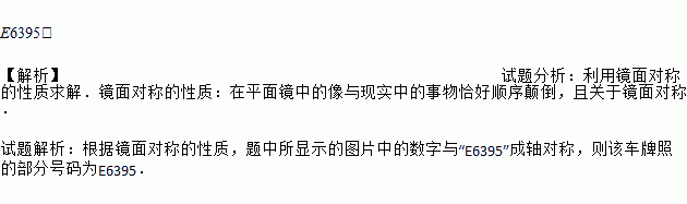 某公路急转弯处设立了一面圆型大镜子,从镜子中看到汽车车的部分号码如图所示,则该车牌照的部分号码为__________.
