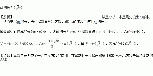 已知线段AB的长为4,以AB为边在AB的下方作正方形ACDB.取AB边上一点E,以AE为边在AB的上方作正方形AENM.过E作EF⊥CD,垂足为F点.若正方形AENM与四边形EFDB的面积相等,求AE的长.