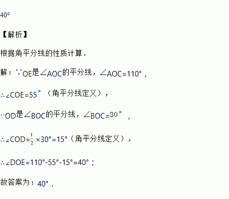 如图,已知OE是∠AOC的平分线,OD是∠BOC的平分线,若∠AOC=110°,∠BOC=30°,则∠DOE=____.