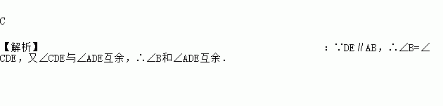 如图所示,AD⊥BC,DE∥AB,则∠ADE与∠B的关系是