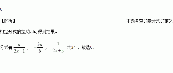 下列各式中,分式的个数为:( )
