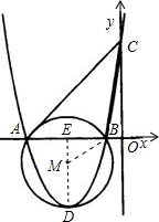 过D作DE⊥x轴于E,则DE必过圆心M,连接BM,