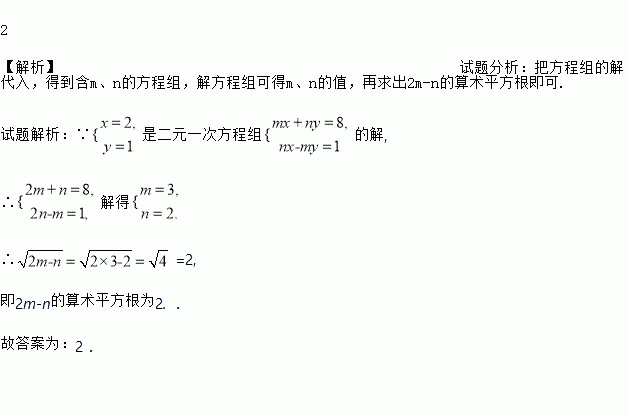 已知是二元一次方程组的解,求2m-n的算术平方根.