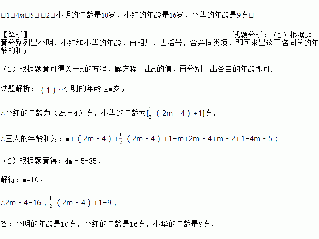 已知小明的年龄是m岁,小红的年龄比小明的年龄的2倍少4岁,小华的年龄比小红的年龄的还多1岁.