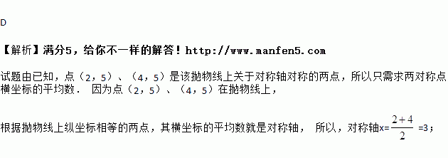 若点(2,5),(4,5)在抛物线y=ax2+bx+c上,则它的对称轴是( )