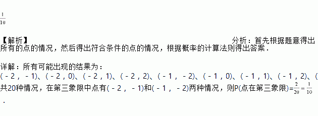 点的坐标是,从、、、、这五个数中任取一个数作为的值,再从余下的四个数中任取一个数作为的值,则点 在平面直角坐标系中第三象限的概率是_______.