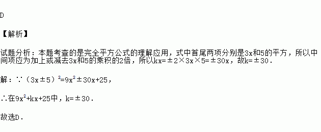 如果9x2+kx+25是一个完全平方式,那么k的值是( )