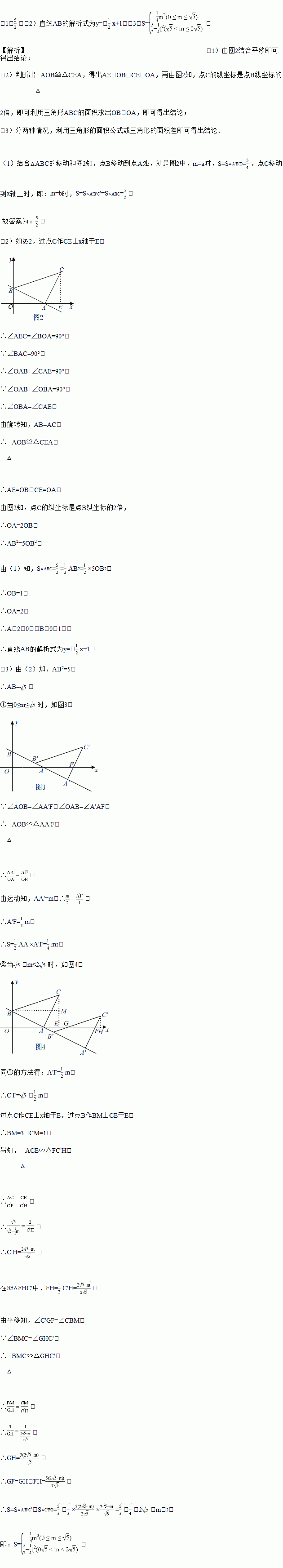 如图1,直线AB与x轴、y轴分别相交于点A、B,将线段AB绕点A顺时针旋转90°,得到AC,连接BC,将△ABC沿射线BA平移,当点C到达x轴时运动停止.设平移距离为m,平移后的图形在x轴下方部分的面积为S,S关于m的函数图象如图2所示(其中0<m≤a,a<m≤b时,函数的解析式不同).