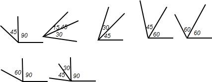 分析:利用三角板的角的特点,把个角进行加减,可以的出7个角.