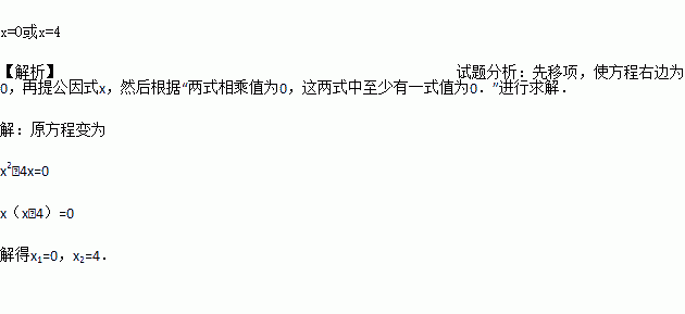 方程x2=4x的解 __.