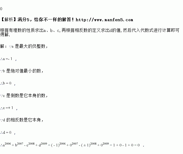 已知是最大的负整数,是绝对值最小的数,是倒数是它本身的数,的相反数是它本身.