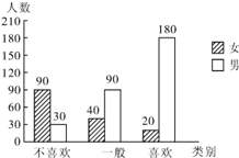 分析:(1)先求出接受调查的女观众的总人数,再由图可知表示“不喜欢”的女观众有90人,然后用90除以总人数即可;