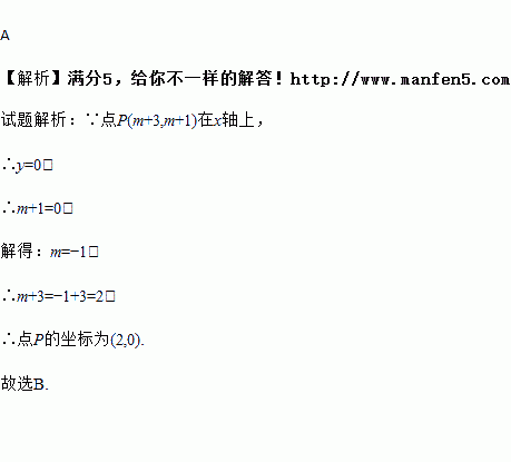 点P(m+3,m+1)在x轴上,则点P的坐标为( )