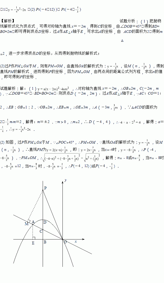 (2) 若点P为抛物线对称轴上的一个点,且∠POC=45°,求点P坐标.