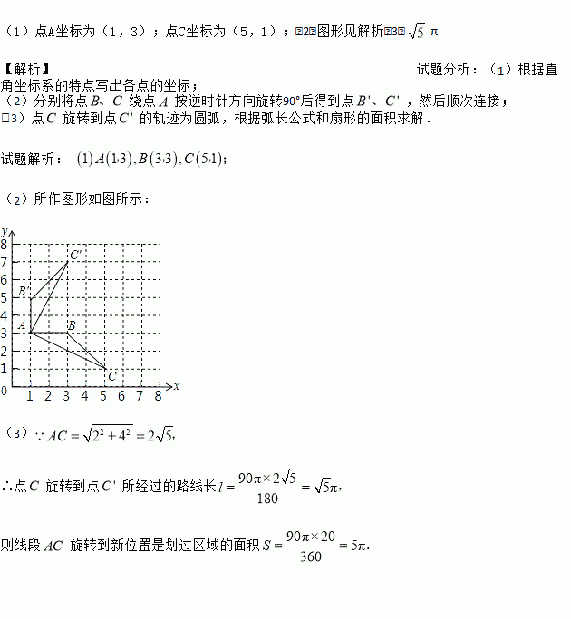 (3)在(2)的条件下,求点C旋转到点C′所经过的路线长(结果保留π).