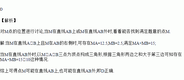 如果线段AB=10 cm,MA+MB=15 cm,那么下面说法中正确的是( )