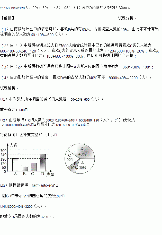 (4)若居民区有8000人,请估计爱吃D汤圆的人数.