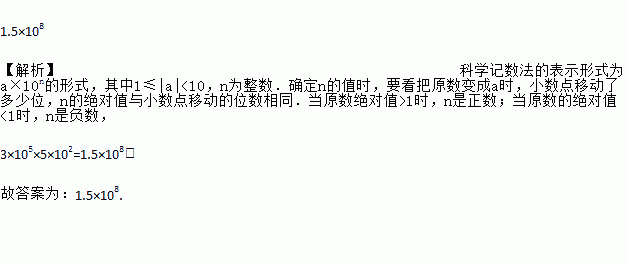 光的速度约为3×105km/s,太阳光照到地球上要5×102s,那么太阳与地球的距离为__________km(用科学记数法表示).