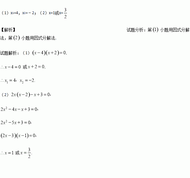 (1)x2﹣2x﹣8=0;(2)2x(x﹣2)=x﹣3.