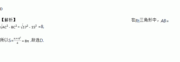 如图,在Rt△ABC中,∠B=90°,BC=15,AC=17,以AB为直径作半圆,则此半圆的面积为( )