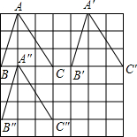 在下面所示的方格纸中,画出将图中△ABC向右平移4格后的△A′B′C′,然后再画出△ABC向下平移3格后的△A″B″C″.