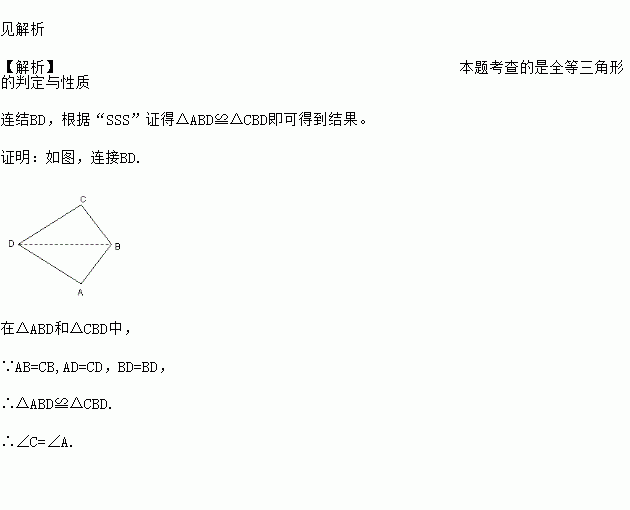 已知:如图,在四边形ABCD中,AB=CB,AD=CD.求证:∠C=∠A.