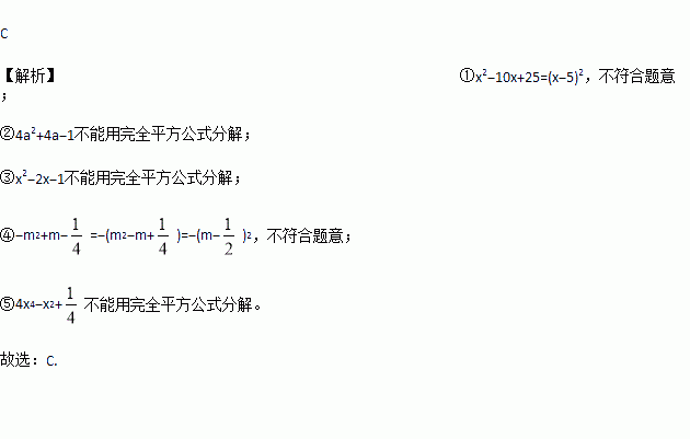 ①x2-10x+25;②4a2+4a-1;③x2-2x-1;④-m2+m-