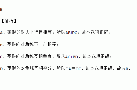 如图.在菱形ABCD中,对角线AC,BD交于点O,下列说法错误的是( )