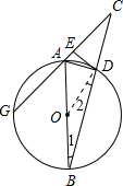 分析:(1)连接OD,由于OD=OB,可推知∠1=∠2,易知,△ADC≌△ADB,于是AB=AC,可推知,∠1=∠C,从而得到∠2=∠C,于是有AC∥OD,故∠EDO=∠CED=90°,即可判断DE⊥DO;