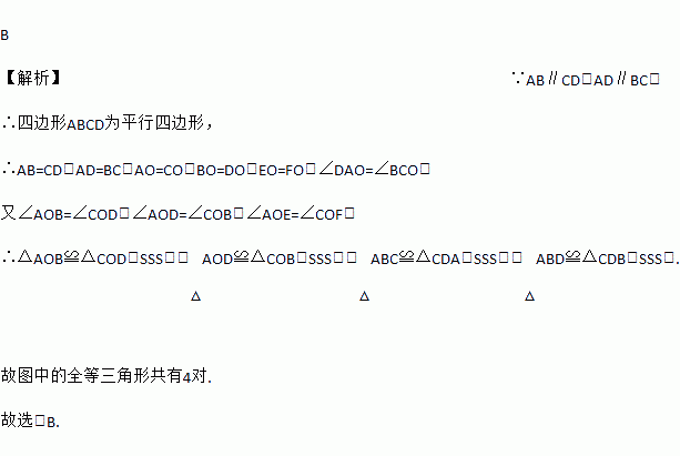 如图,AB∥CD,AD∥BC;则图中的全等三角形共有( )