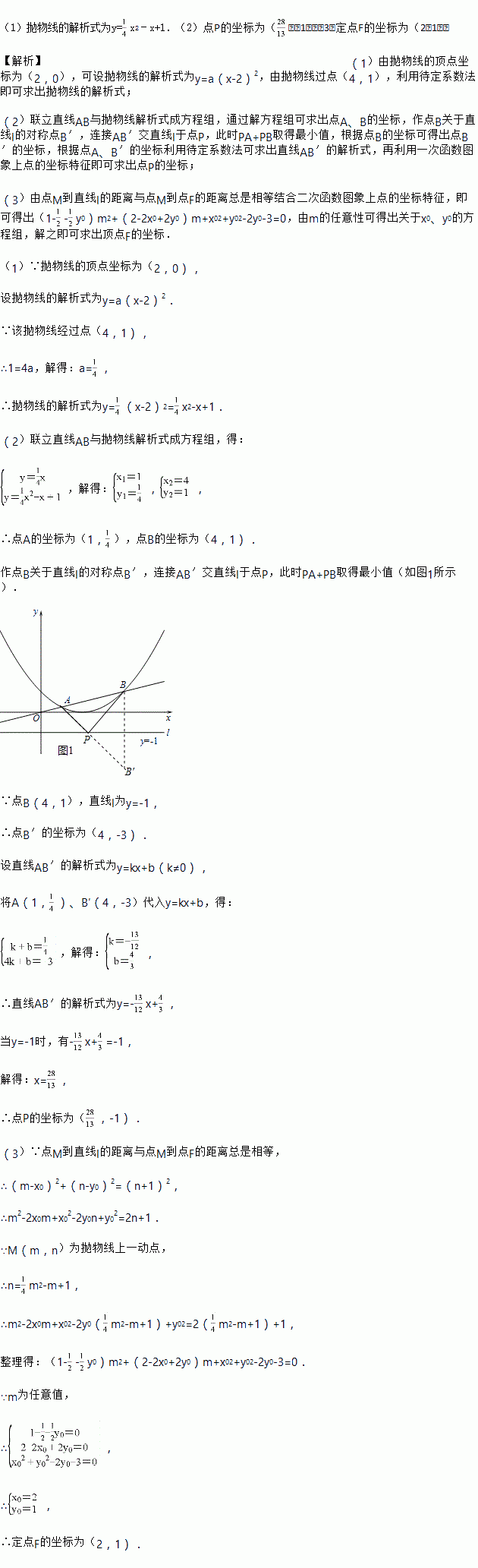 (3)知F(x0,y0)为平面内一定点,M(m,n)为抛物线上一动点,且点M到直线l的距离与点M到点F的距离总是相等,求定点F的坐标.