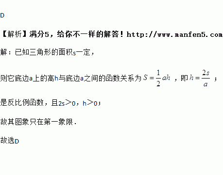 已知三角形的面积一定,则底边与其上的高之间的函数关系的图象大致是( )