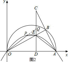 £¨3£©ÀûÓã¨2£©µÄ½áÂÛÒ׵õãPµÄ×ø±ê£¬·ÖÀàÌÖÂÛ£º¢ÙÈôµãPÔÚCDµÄ×ó²à£¬ÑÓ³¤OP½»CDÓÚQ£¬ÈçÓÒͼ2£¬Ò×µÃOPËùÔÚÖ±Ïߵĺ¯Êý¹ØÏµÊ½£¬±íʾ³öQµãµÄ×Ý×ø±ê£¬µÃQEµÄ³¤£¬±íʾ³öËıßÐÎPOAEµÄÃæ»ý£»¢ÚÈôµãPÔÚCDµÄÓҲ࣬ÑÓ³¤AP½»CDÓÚQ£¬ÈçÓÒͼ3£¬Ò×µÃAPËùÔÚÖ±ÏߵĽâÎöʽ£¬´Ó¶øÇóµÃQµãµÄ×Ý×ø±ê£¬µÃQEÇóµÃËıßÐÎPOAEµÄÃæ»ý£¬µ±PÔÚCDÓÒ²àʱ£¬ËıßÐÎPOAEµÄÃæ»ý×î´óֵΪ16£¬´ËʱµãPµÄλÖþÍÒ»¸ö£¬Áî-$\frac{3}{8}$p2+$\frac{9}{4}$p+15=16£¬½âµÃp£¬µÃ³ö½áÂÛ£®