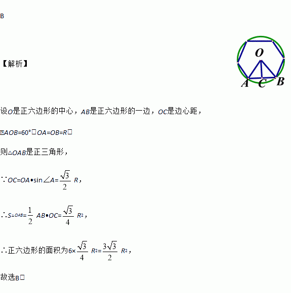 已知圆的半径为R,这个圆的内接正六边形的面积为( )