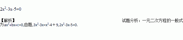 把方程:3x(x-1)=(x+2)(x-2)+9化成一般形式为__________________.