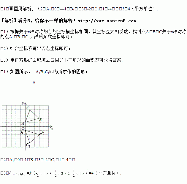 (1)画出△ABC关于x轴对称的图形△A1B1C1;