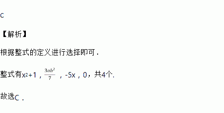 下列式子:,,,,,0中,整式的个数是 ( )